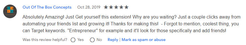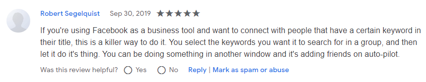 Amazing! Works as Advertised! Super cool and fast way to get targeted friends on Facebook without having to sit there for hours and manually do everything