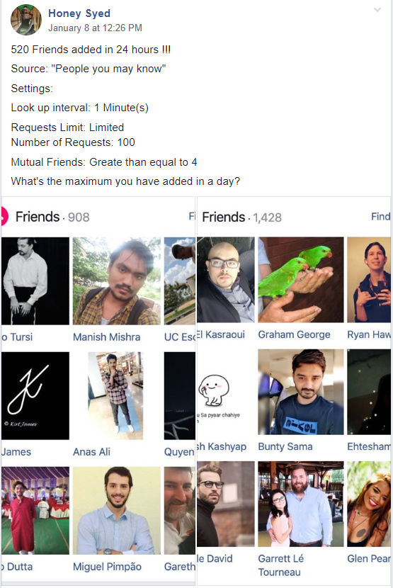 When you add friends from a Group List you never know how active they actually are on Facebook. That's why adding friends from post and ads engagement are our favorite because you know they are active and engaged.